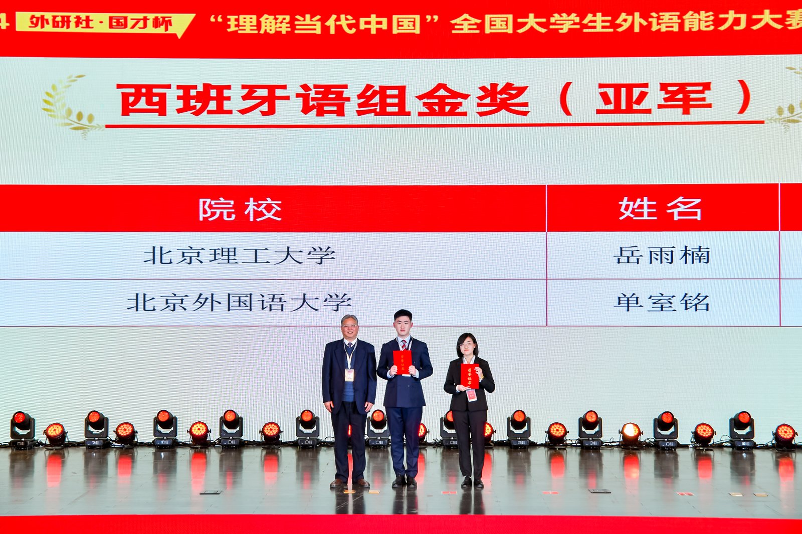 供稿、供图:张阡陌、刘芝言 编辑:陈文婧 12月9日,2024“外研社·国才杯”“理解当代中国”全国大学生外语能力大赛(多语种组)国赛第二阶段在北京落幕。180余名多语种选手齐聚一堂,用外语讲述中国发展变迁,展现多元文化风采,搭建交流合作、互学互鉴的友谊桥梁。在激烈的竞争中,德语系研一学生张阡陌和大四学生刘芝言凭借出色的表现和稳定发挥,从众多参赛者中脱颖而出。张阡陌荣获国家级银奖,刘芝言斩获国家级铜奖。德语系汪亚利、张勇、李慧坤老师获评优秀指导教师。 刘芝言同学在国赛第一轮以...