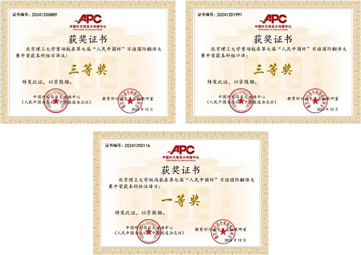 供图、供稿:张元卉 编辑:陈文婧 2024年11月29日,第七届人民杯日语翻译大赛完美落幕。日语专业2024级姚尚辰、2023级曾翊航分别获得日译汉一等奖与口译三等奖、汉译日三等奖的优异成绩。 人民中国杯日语国际翻译大赛是中国外文局亚太传播中心(人民中国杂志社、中国报道杂志社)和教育部日语专业虚拟教研室联合主办,中国日语教学研究会、中国日语教学研究会华南分会及广东外语外贸大学东方学研究院协办,广东省翻译协会及广州市联普翻译有限公司承办的第七届人民中国杯日语国际翻译(口笔译)大赛自开...