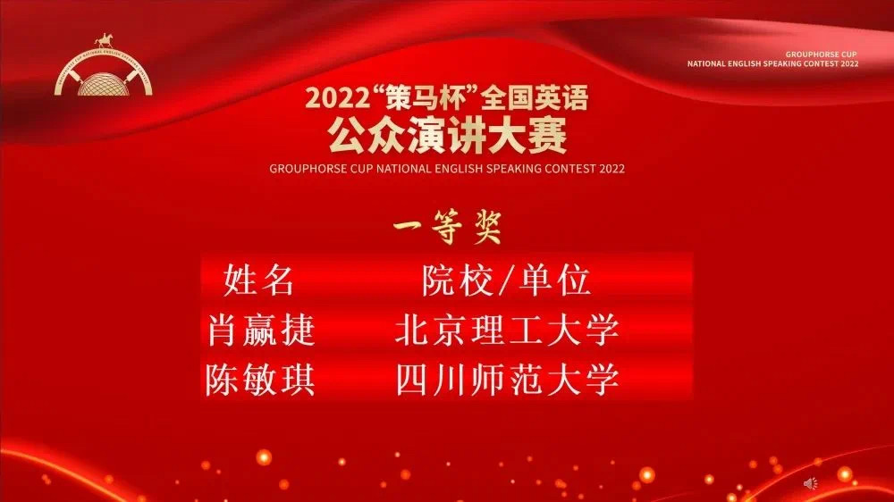 供稿:甘甜 图片:策马翻译 编辑:王喆 2023年3月19日,2022“策马杯”全国英语公众演讲大赛全国总决赛隆重举行。北理工学子在总决赛中连创佳绩,斩获了总决赛一等奖、二等奖、三等奖等多项奖项。 本次大赛由英国大使馆文化教育处/英国文化教育协会官方支持,英国皇家特许语言学家学会和北京策马翻译有限公司(联合国官方翻译服务供应商)联合主办。经过校赛、市赛、大区赛(半决赛)长达五个月的激烈角逐,半决赛冠军肖赢捷,南北部大区赛冠军罗弋桐、亚军甘甜和一等奖获奖选手任闯闯最终晋级总决赛。 ...